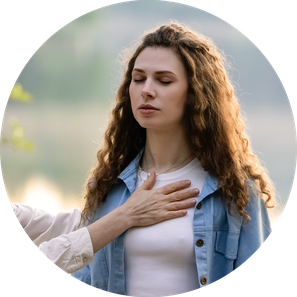 Die Atempädagogin unterstützt und begleitet mit ihren Händen den Menschen dabei, sich körperlich zu spüren und auf die Veränderungen des Atemgeschehens zu achten.